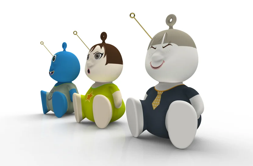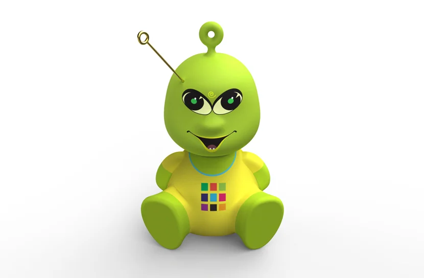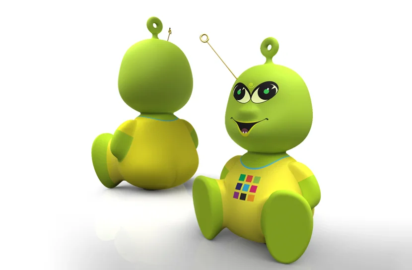 The first design of the Acupunture Baby was a brave and happy Green Alien with an antenna that mimiced acupuncture. The design was well received by the organization and three more character designs were then requested.