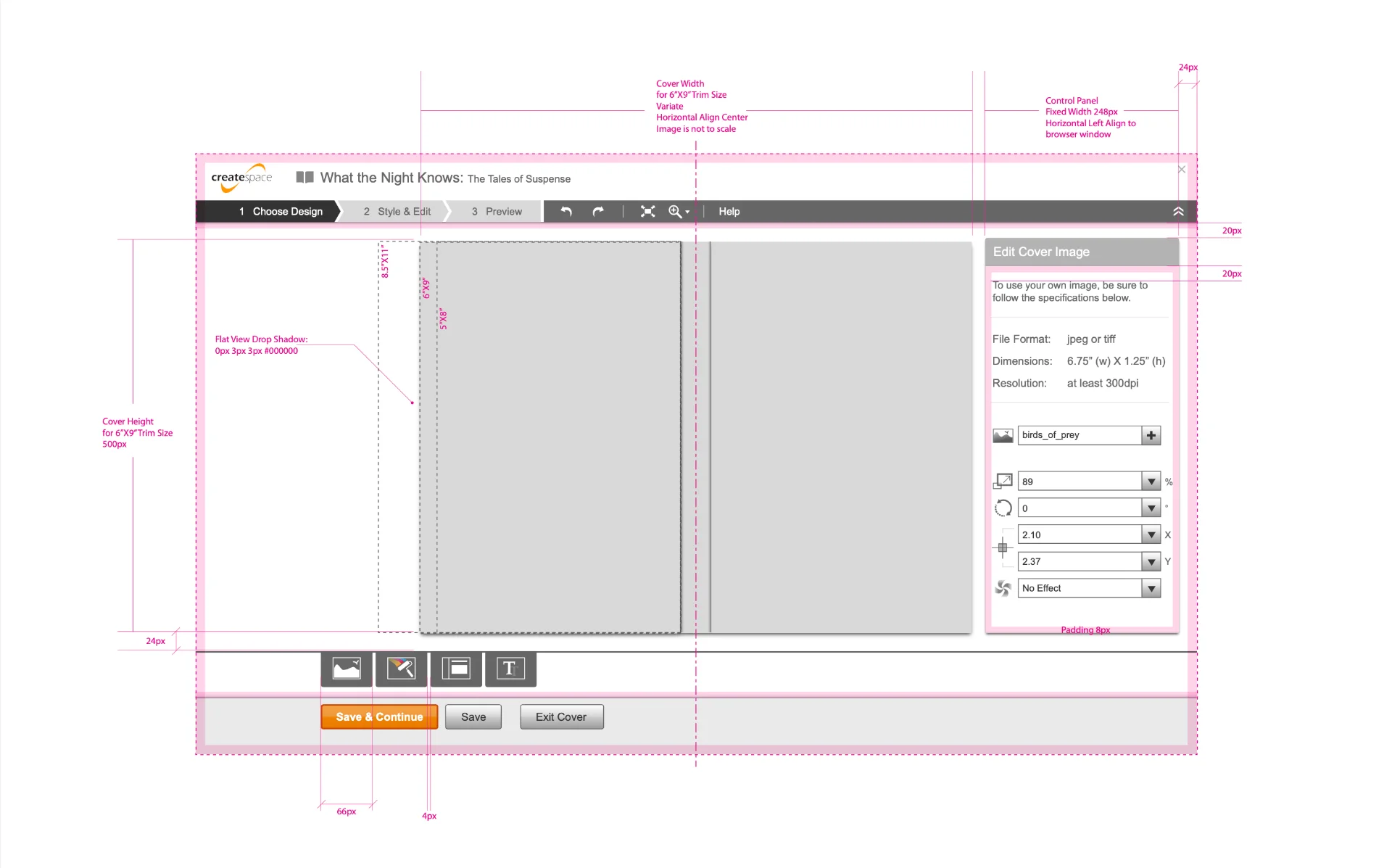 The objective of this project is to provide an online tool where the users can easily create covers with a few clicks. The user first chooses an image to use as the background for the cover, and then customize the color and fonts with the quick styles set. At the end, the user can preview the cover design before submission. The whole process takes less than 10 minutes of the user's time.