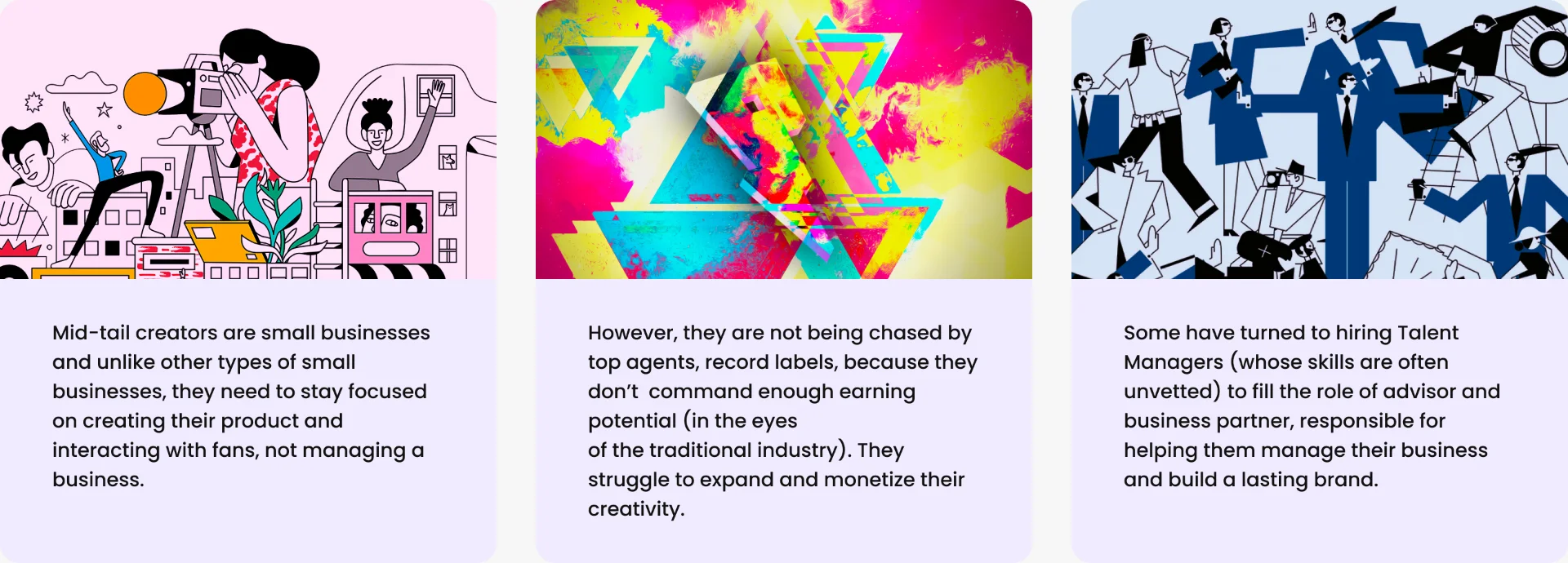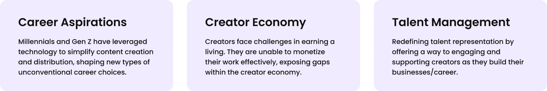 While the creator economy has opened up unprecedented opportunities, many creators struggle with building sustainable businesses due to a lack of formal training and industry connections. Our research revealed three significant gaps: