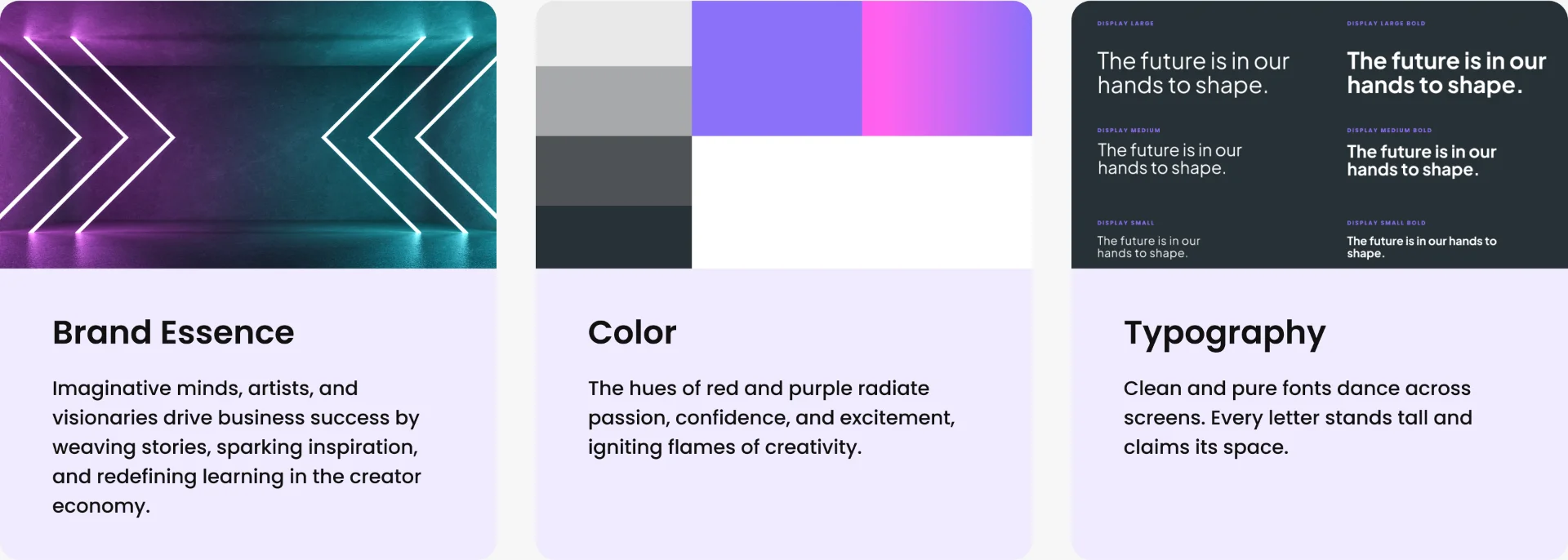 Brand Identity and Design System: We established a vibrant brand identity celebrating imaginative minds and infused it into our product through a design system integrated across channels.