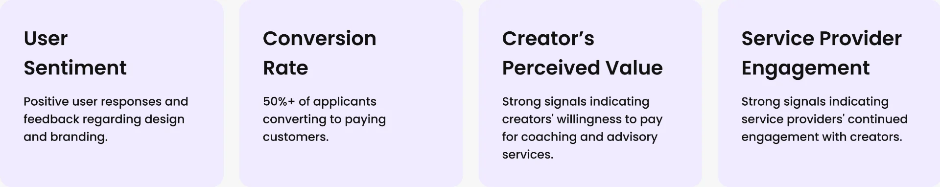 We tested the concept of matching creators with digital experts, which resonated well with our target audience.