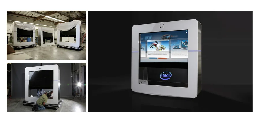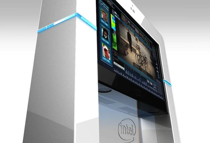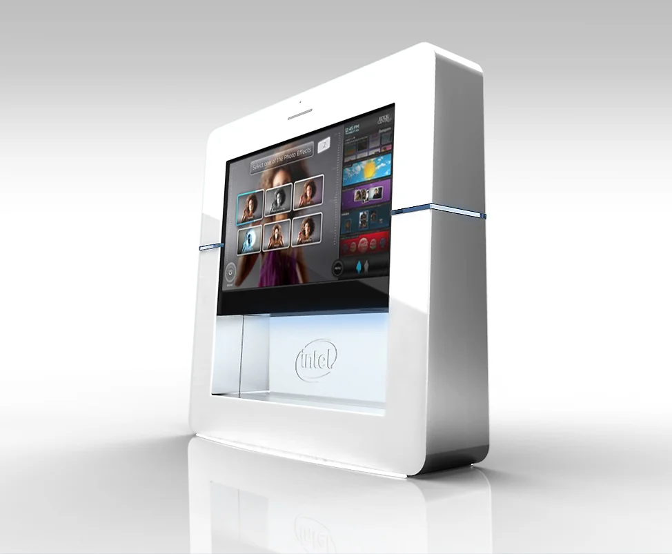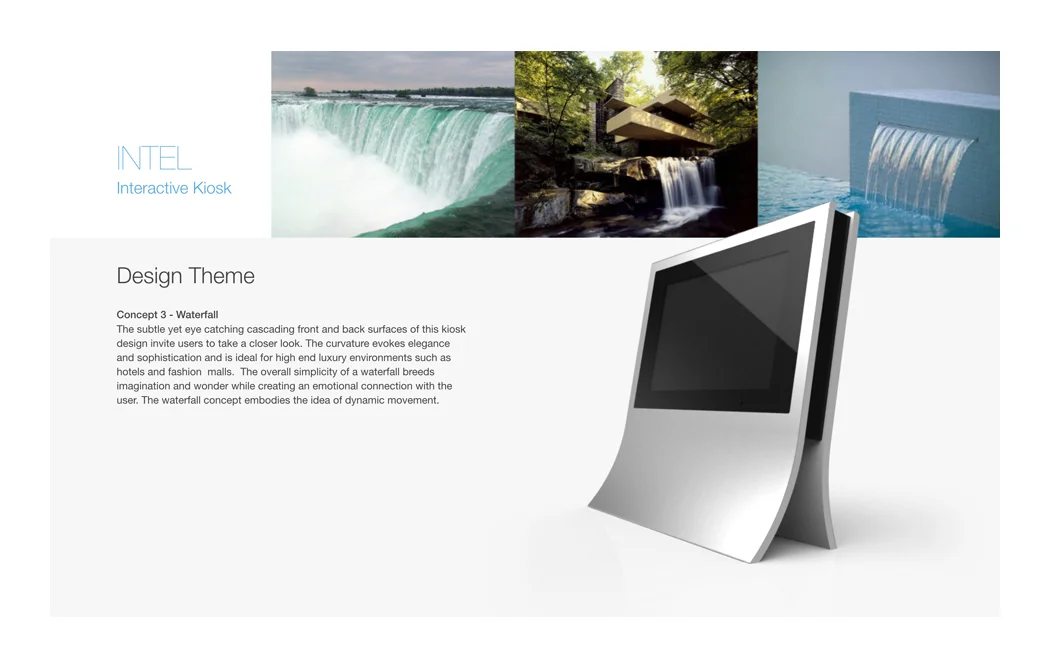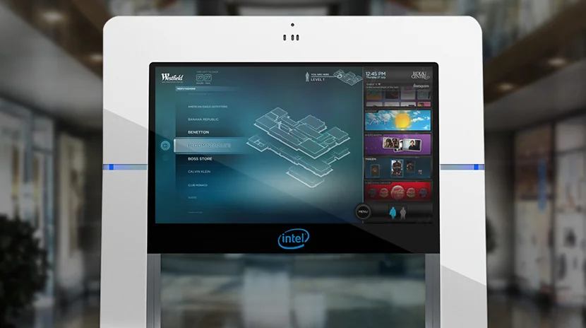 Intel Interactive Kiosk – a free standing interactive touch display kiosk that is specifically and thoughtfully designed for a high-end luxury environment such as hotels and fashion malls.