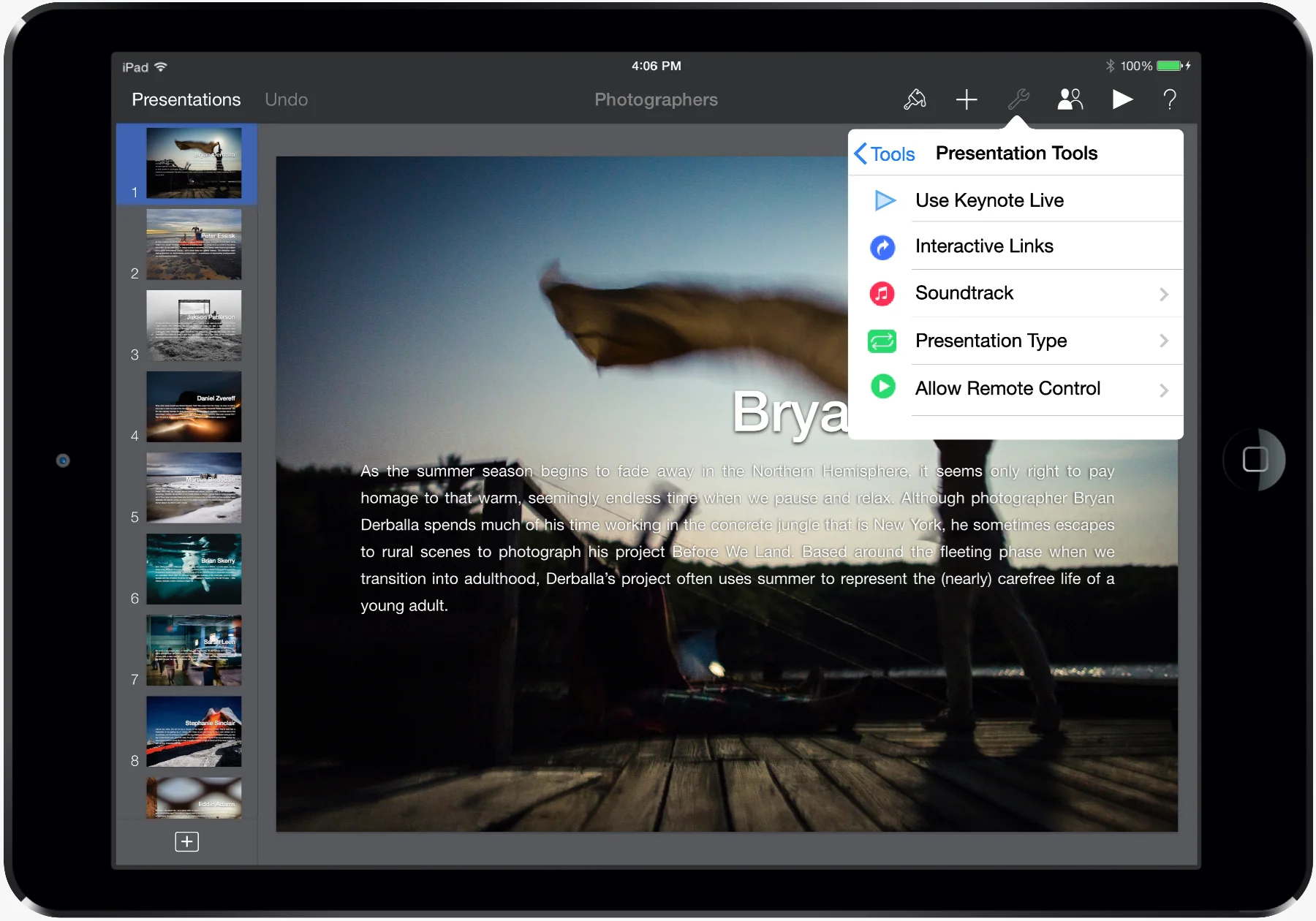 Keynote Live – Real-time, synchronized presentation tool for presenters to guide story telling.