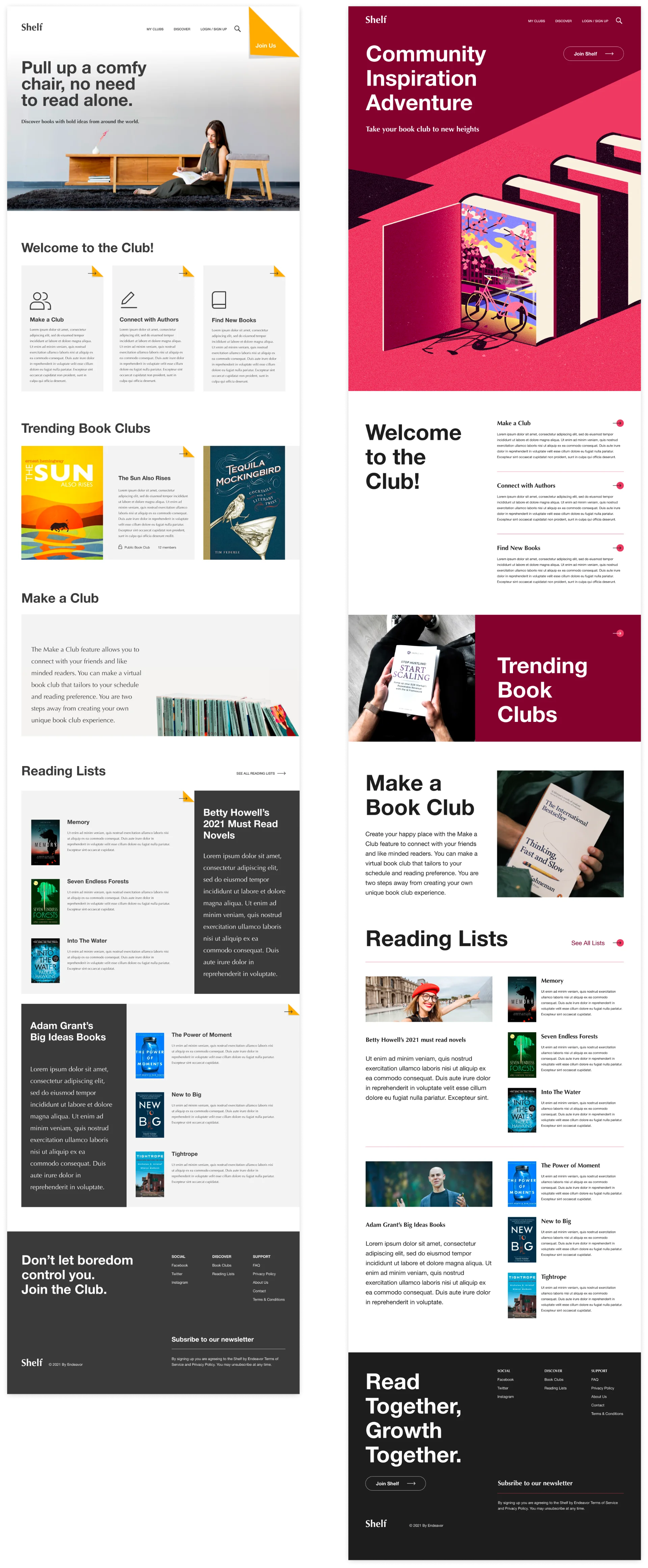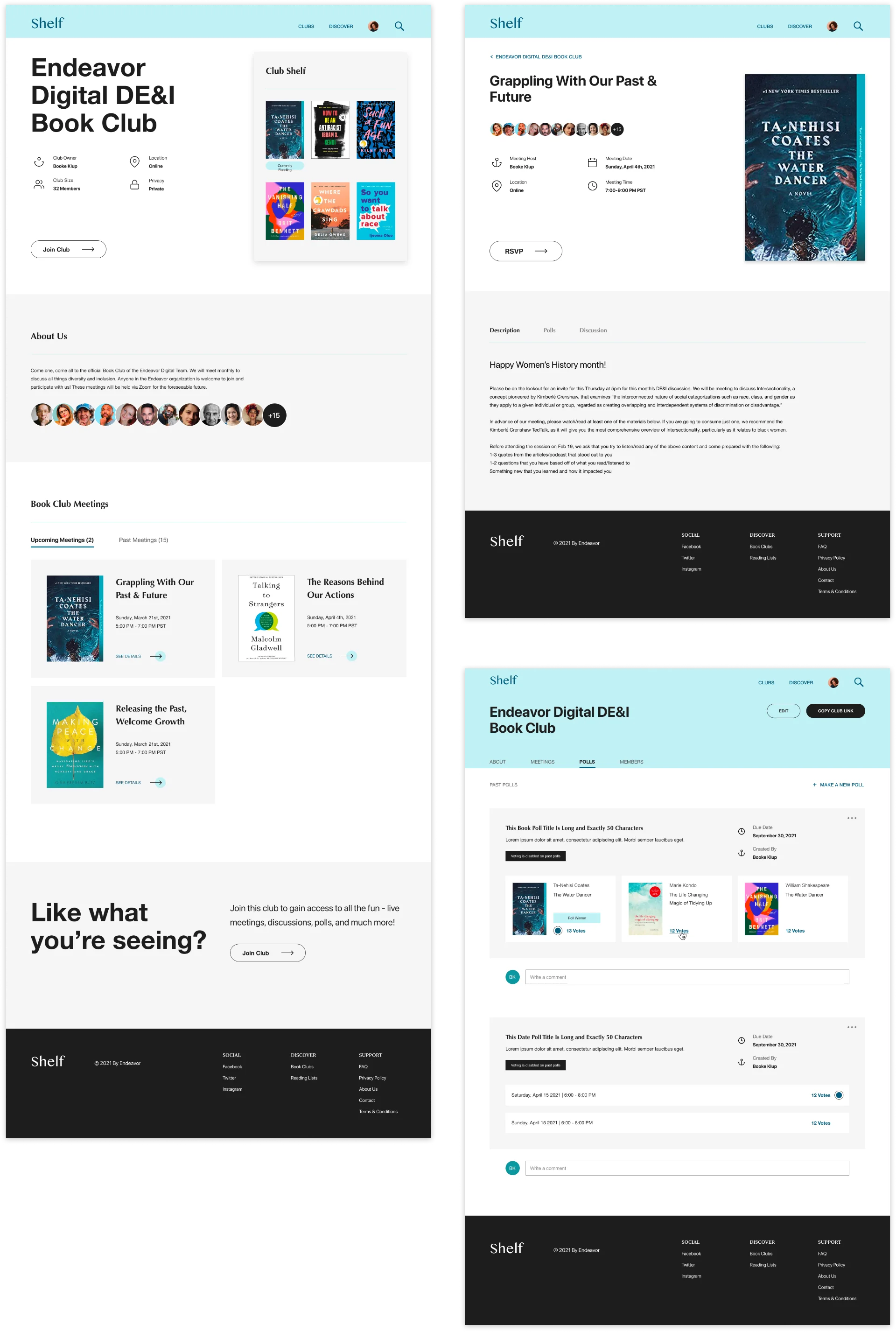 With a deep understanding of our users' needs and desires, we meticulously crafted a brand identity that exuded warmth, inclusivity, and boundless possibility. From the calming hues of our logo to the playful design elements and animations scattered throughout the platform, every aspect of Shelf Book Club's brand was carefully curated to invite readers into a welcoming space where they could feel seen, heard, and valued as members of a vibrant literary community.